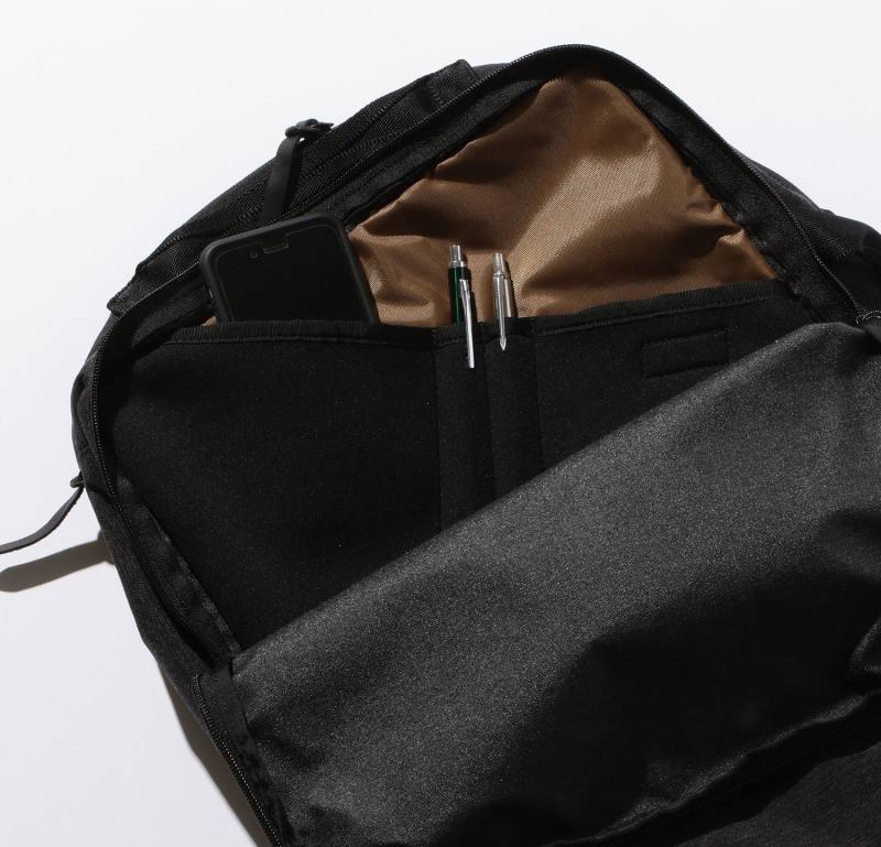 飛行機に乗り込むときや、客先で必要なものがさっと取り出せるよう収納が小分けになっていると、使い勝手が良くて最高ですね。