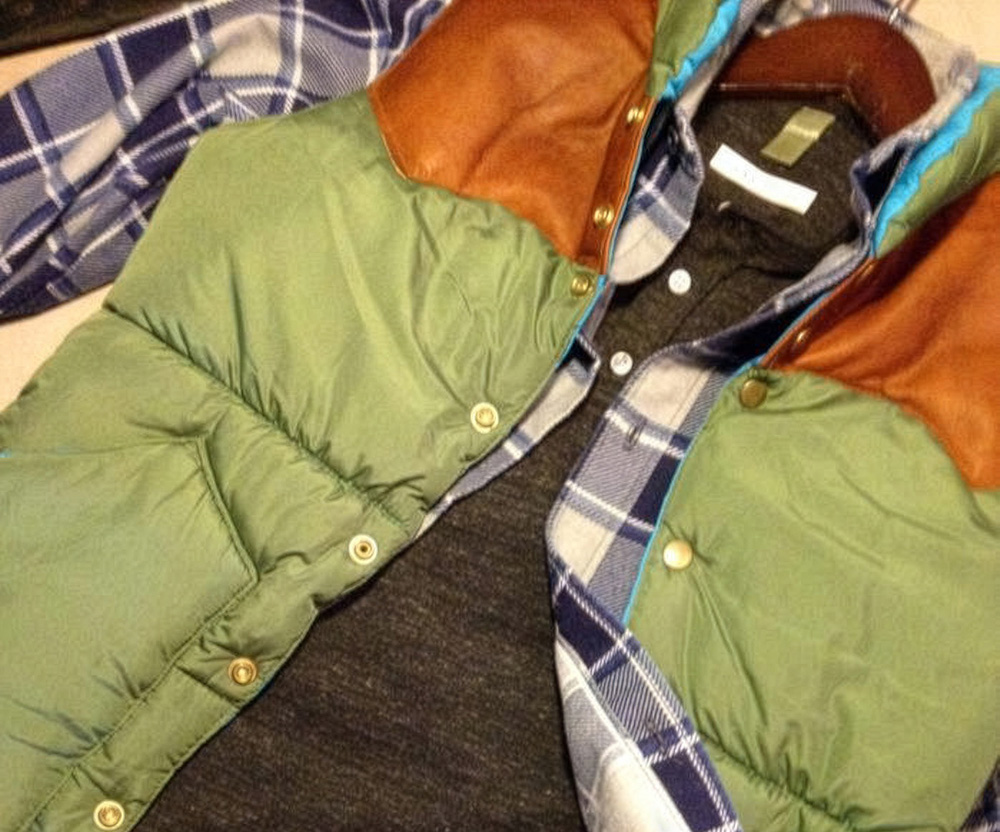 このダウンを見てほしい。セージグリーンのナイロンボディに対し、経年変化で深みを増した茶のレザーヨーク。そして、内側から覗く鮮やかなシアンブルー。この「3色のコントラスト」こそが、当時のアウトドアウェアが持っていた、自然界に馴染みつつも自己を主張するポップな色彩感覚を象徴している。
