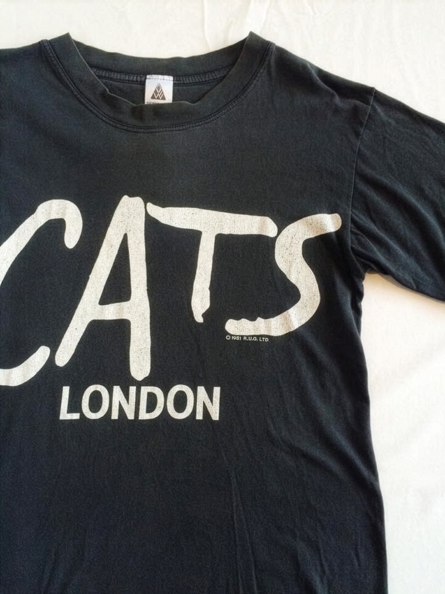 ©1981 R.U.G. LTD.。R.U.G.は作曲家アンドリュー・ロイド・ウェバーの制作会社「Really Useful Group」の略称。1981年は初演年であり、このシャツ自体はタグの質感やステッチから、1980年代後半あたりのものと推測されます。